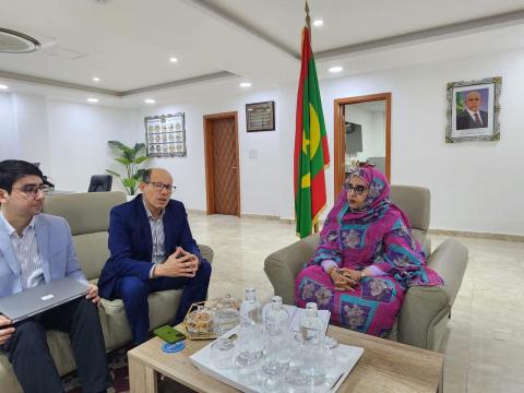 استقبلت وزيرة البيئة والتنمية المستدامة، السيدة مسعودة بحام محمد لغظف، يوم الاثنين 16 فبراير 2026، وفداً من NDC Partnership، في إطار تعزيز التعاون لدعم تنفيذ الالتزامات المناخية لموريتانيا.